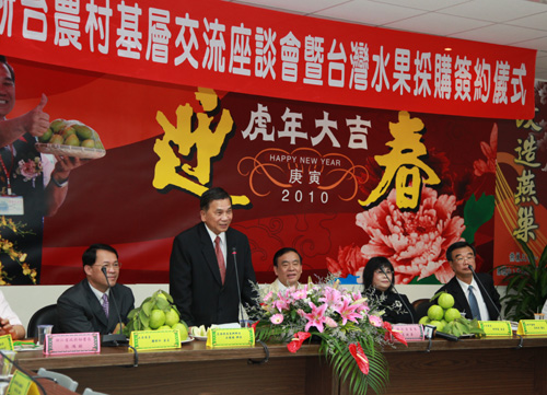座谈会上,浙江省天台县石梁镇石梁村等5个村的村长与高雄县的5个村结为友好村坊,建立了长效交流对接机制。浙江省从高雄农户手中现场采购凤梨5000箱、香蕉2600箱、芭乐1600箱、芒果1800箱,并签订了总价值人民币1500万元的农产品采购合同。