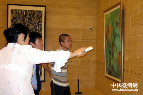 画展现场参观者对展出作品展开热烈讨论。(中国台湾网 刘莹 摄)