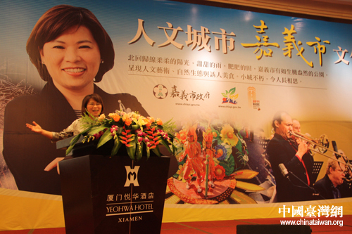 中国台湾网6月19日厦门消息 第二届海峡论坛将于今晚正式开幕,借参加海峡论坛契机,嘉义市市长黄敏惠在厦门举行“人文城市——嘉义市文化观光记者会”,推介嘉义市和台湾中南部观光。黄敏惠表示,欢迎更多大陆同胞到嘉义和台湾中南部旅游,同时也期盼两岸能在和平发展中寻求最大的利益与繁荣。