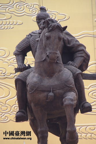 开漳圣王陈元光塑像今天下午在漳州市人民广场落成。(中国台湾网 肖燕 摄)