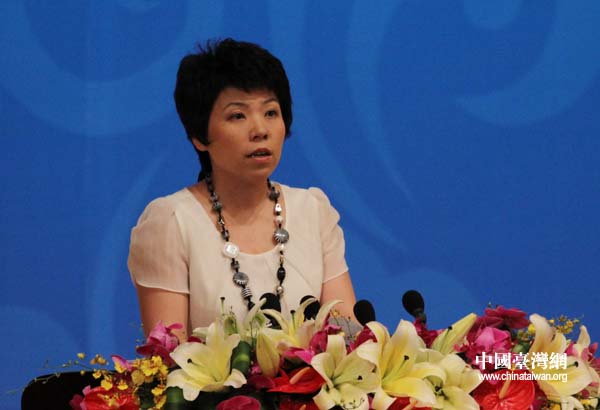 6月20日上午9时,第二届海峡论坛大会在厦门海峡会议中心海峡厅举行,图为全国青联委员、北京市青联副主席邓亚萍在会上发表演讲。(中国台湾网 钟宝华 摄)