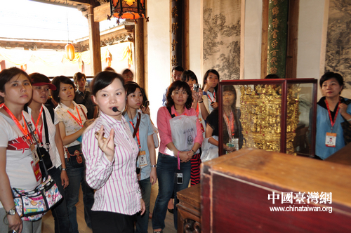 历届“和平小天使”兴致勃勃地参观福州三坊七巷的传统建筑。(中国台湾网 包杰 摄)