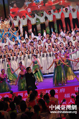 中国台湾网6月22日福州消息 21日晚,由中国音乐家协会、福州市政府和福建省对外文化交流协会联合主办的“海峡论坛·第三届海峡两岸合唱节”在福州市体育馆举办了闭幕式暨颁奖音乐会。中共中央台办、国务院台办副主任叶克冬,中国音协分党组书记、常务副主席徐沛东,福建省有关领导袁荣祥、唐国忠、苏增添、李祖可等嘉宾,在闭幕式上向来自海峡两岸参加本届合唱节的获奖单位颁发了奖杯和证书。