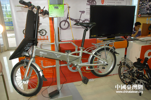 一款太阳自行车吸引了众多参观者的目光 (中国台湾网 王伟 摄)