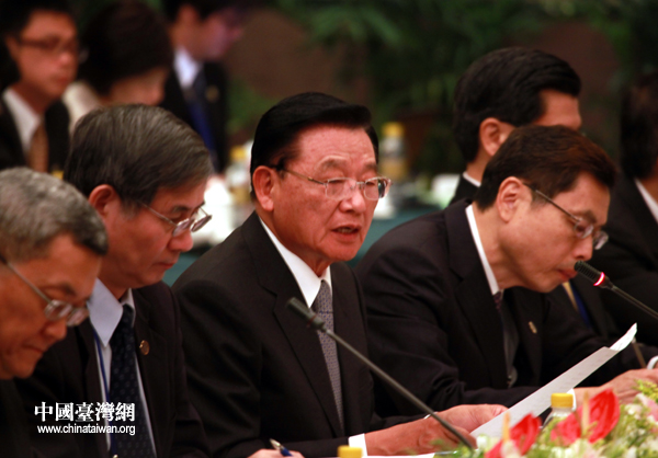 6月29日上午,两岸两会领导人第五次会谈在重庆登场,海基会董事长江丙坤致辞。(中国台湾网 钟宝华 摄)