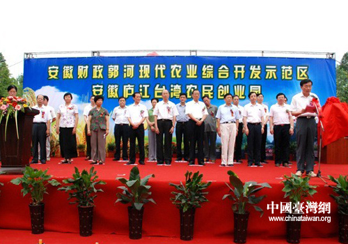 仪式上,安徽省财政厅副厅长罗建国宣读了建设安徽财政郭河现代农业综合开发示范区的文件,国台办经济局副巡视员叶向东宣读了农业部、国台办对安徽庐江台湾农民创业园的批复。