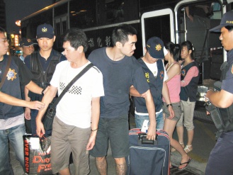 彰化警方从越南押解诈骗集团成员返台,连人带行李带往彰化县警察局。图片来源:台湾《联合报》