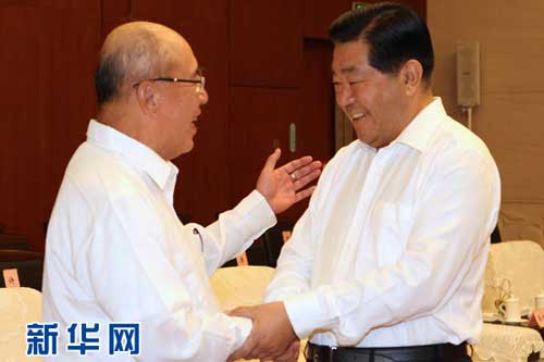 中共中央政治局常委、全国政协主席贾庆林9日下午在广州会见了中国国民党荣誉主席吴伯雄和应邀出席第六届两岸经贸文化论坛的两岸各界人士。
