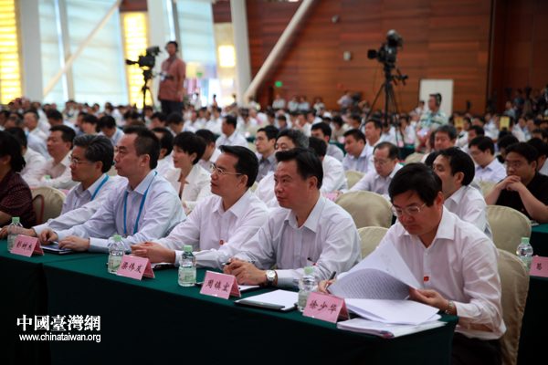 以“加强新兴产业合作,提升两岸竞争力”为主题的第六届两岸经贸文化论坛10日在广州开幕,两岸代表便装参会。(中国台湾网 钟宝华 摄)
