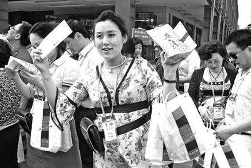在台北血拼的大陆游客,兴奋地展示自己的“战利品”