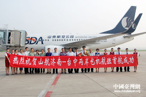 中国台湾网7月23日济南消息 今日上午8时,随着山东航空股份有限公司一架满载旅客的波音737-700飞机自济南遥墙国际机场腾空而起,济南至台中市包机航线正式开通。