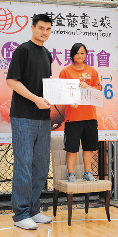中国台湾网7月27日消息 据台湾《联合报》报道,姚明26日抵台访问,和高雄县“八八”水灾受灾户学生会面。姚明2.26米的身高让全场惊呼,民进党籍高雄县长杨秋兴(绰号小巨人)更笑喻“我这个小巨人,真正面对大巨人了!”