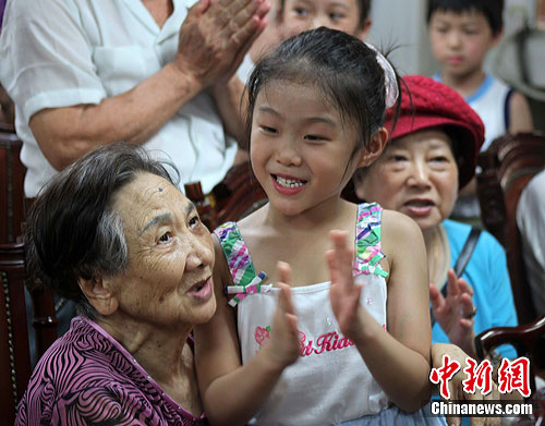7月31日下午,北京市蓝天艺术团的小朋友们来到台北市立浩然敬老院看望老人们,并带去了精彩的歌舞节目。