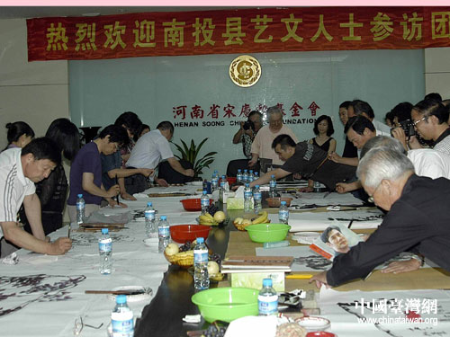 中国台湾网8月4日郑州消息 由宋庆龄基金会策划组织的台湾南投与河南书画名家艺术雅集活动,日前分别在洛阳市华阳广场国际大饭店和郑州河南省宋庆龄基金会隆重举行。据悉,这是台湾南投与河南书画名家的首次联谊活动。