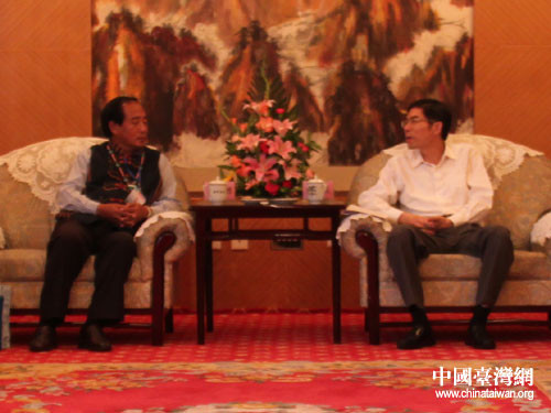 青海省副省长王令浚(右)会见来青参加活动的台湾少数民族交流团一行。图片来源:青海省台办
