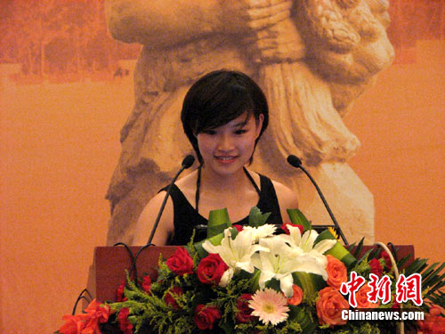 第二届海峡两岸炎帝神农文化论坛8日在湖北随州市举行,年仅22岁、来自台湾的美女学者宋佳颖现身论坛,发表《台湾民俗艺阵创新发展之研究》演讲,成为全场的亮点。作 者:李映民 李纯