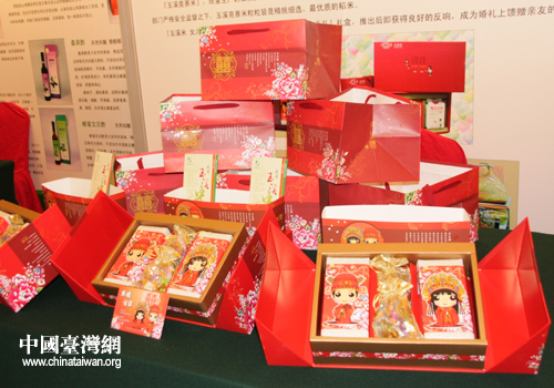 台湾花莲县玉溪地区农会展出的订婚礼品米(中国台湾网 刘凯 摄)