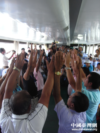 台湾文化界人士在漓江上合影留念(中国台湾网 芜同 摄)