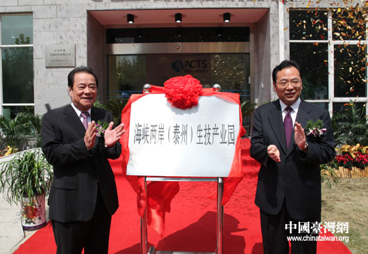 9月19日,“海峡两岸(泰州)生技产业园”在江苏省泰州市“中国医药城”内揭牌,台湾工业总会理事长陈武雄(左)出席。(中国台湾网 钟宝华 摄)