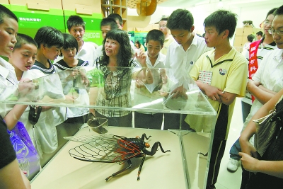 9月17日至11月12日,来自台湾自然科学博物馆的《鸣虫特展》在福州科技馆举办。鸣虫是指善鸣之虫,常见的鸣虫有蟋蟀、蛐蛐等。鸣虫大多依靠土壤生活,是城市自然环境保护程度的指示物种。该展通过介绍鸣虫的发音目的、发音方式等,用鸣虫与人类之间的密切关系来揭示环境保护、生态保护的重要性。据悉,与展览配套的相关科普活动也将陆续展开,如虫虫音乐会、观展体验活动以及专题科普讲座等。图为台湾自然科学博物馆动物学组博士詹美铃正在向学生们讲解鸣虫知识。(记者 吴恩儿)
