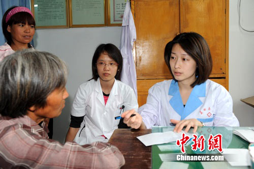 23日,来自西安交大医学院第一附属医院和台湾阳明大学的11位医学教授,在位于陕西省中部的蓝田县医院开展义诊。这是自9月5日两岸医学生在此间开展社会实践以来规模最大的一次义诊活动。