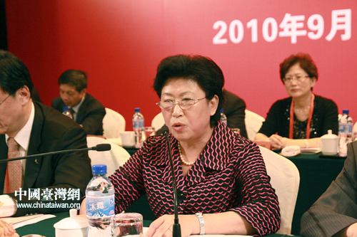 9月24日,中央统战部副部长、中国和平统一促进会秘书长尤兰田主持会议,并作最后总结。(中国台湾网 杨丽 摄)