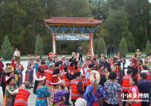 台湾少数民族敦煌文化之旅参访团在肃南裕固族自治县与当地少数民族联欢(图片来源:甘肃省台办)