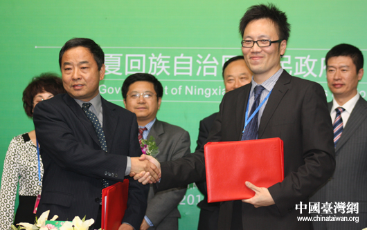 台湾“行家旅行社”负责人分别和宁夏中国国际旅行社、宁夏海外旅游有限责任公司签署了“两地旅游接待互助合作”协议。 (中国台湾网 王伟 摄)