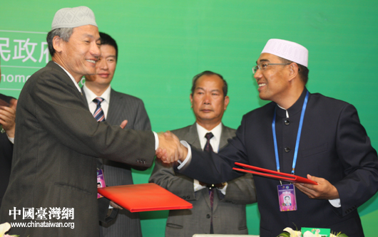 台湾“中国回教协会”与宁夏伊斯兰教协会签订“HALAL(清真)产业和文化交流合作”协议。 (中国台湾网 王伟 摄)