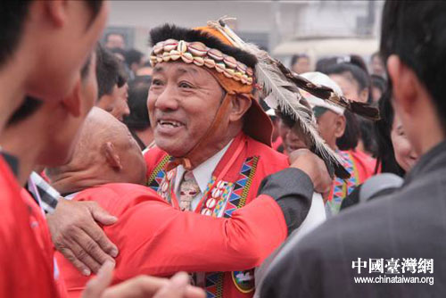 开幕式现场,身着鲜艳民族服装的台湾阿里山邹人部落乡亲一行15人在台湾少数民族民意代表简东明的带领下来到“台湾村”,探访300多年前迁居到此的宗亲后裔。“台湾村”村民们穿着节日盛装列队欢迎来自海峡对岸的亲人。大家相见热情拥抱,共话同宗之情,祭拜共同的祖先依那思罗夫妇。