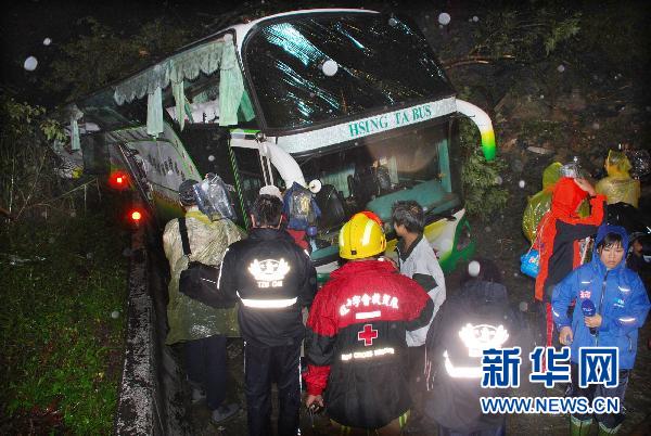 10月22日凌晨,台湾红十字会救灾队员在苏花公路抢救被困游客。 10月21日,受台风“鲇鱼”影响,台湾宜兰县及东北地区降下暴雨,出现严重的洪水灾情。台湾红十字会救灾队员21日抵达宜兰,送达救灾物资并开展救援工作。