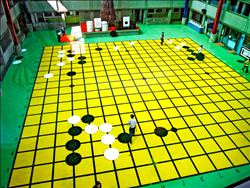400平方米的超大棋盘呈现比赛实况,令人大开眼界。图片来源:台湾媒体