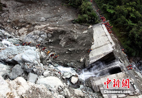 10月25日,在台湾苏花公路上寻找失踪大陆游客的搜救工作已进入第四天。图为台湾的搜救队在114.5公里,斜坡度角度达百分之七十五的宽阔溪谷中进行大面积搜索。记者陈立宇/摄
