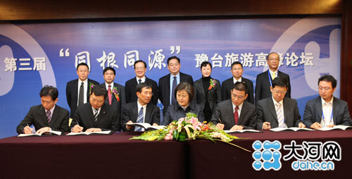 会议期间河南省旅游局分别与台湾多家旅行社签订战略合作协议,就相关豫台旅游合作事宜达成共识。据悉,活动期间还将在新郑举行“同根同源?共拜先祖”活动,并组织与会者参观考察河南各地市的旅游市场。