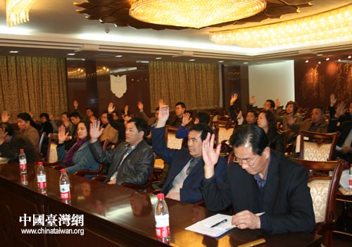 会议选举促进会第一届理事会成员(图片来源:宁夏台办)
