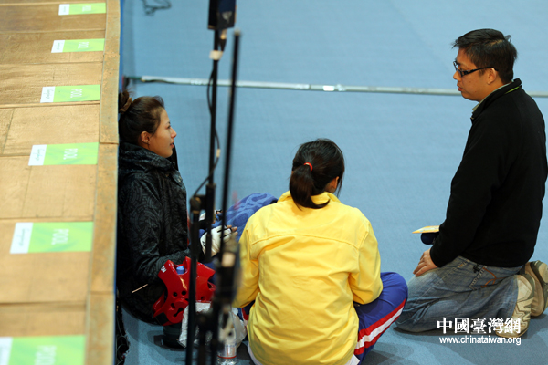 比赛结束后,杨淑君迟迟不肯离场,等待中华台北队方面与赛会裁判组方面的沟通。(记者 李徽)
