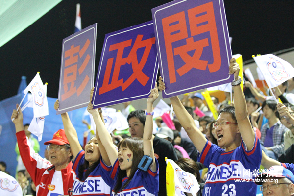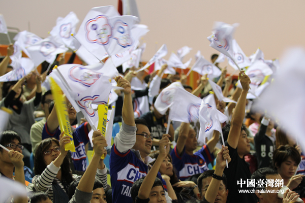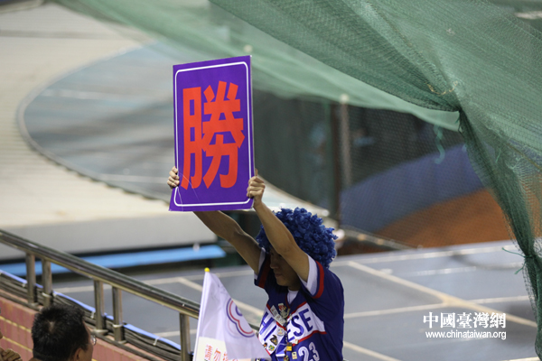 中国台湾网11月19日广州消息 18日晚,广州亚运会一场棒球半决赛在中华台北队和日本队之间激烈进行 ,不少从台湾赶过来的棒球迷占领大部分看台,群情激昂,高喊口号,挥动旗帜,为台湾棒球健儿加油。中华台北棒球队不负众望,最终以4:3拿下日本队,挺进决赛。(记者 钟宝华)