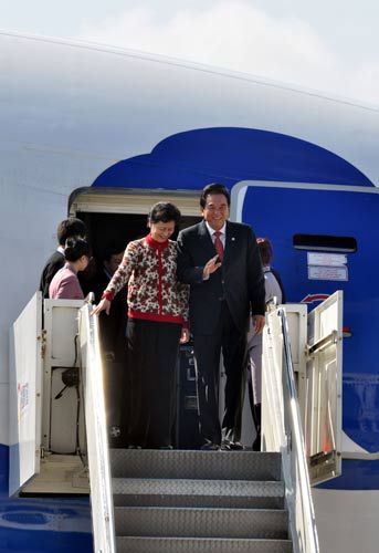 大陆海峡两岸关系协会会长陈云林等人,今天(20日)中午搭机抵达桃园机场。陈云林直接下机,他向守候媒体及接机人员挥手。海峡交流基金会副董事长高孔廉等人前往接机,现场并有大批媒体守候。 “中央社”图