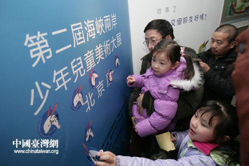 中国台湾网1月1日北京消息 “第二届海峡两岸少年儿童美术大展”北京展1日在北京今日美术馆隆重举行,展览将持续到1月9日。这是本届大展继 2010年12月18日在台北孙中山纪念馆盛大开幕后,在大陆地区的首次展览。