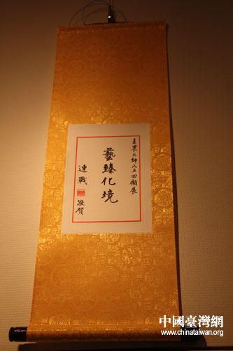 中国国民党荣誉主席连战为展览题字 (中国台湾网 刘海伟 摄)