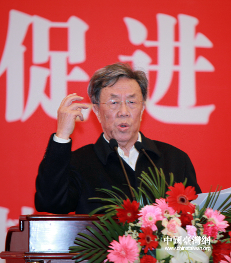 中华文化联谊会顾问、作家、教授王蒙在第九届两岸关系研讨会上作主题演讲。(中国台湾网 钟宝华 摄)