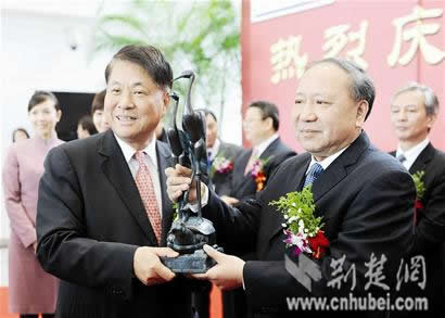 图为:省政协副主席陈春林(右)与中华航空总经理孙洪祥交换礼物