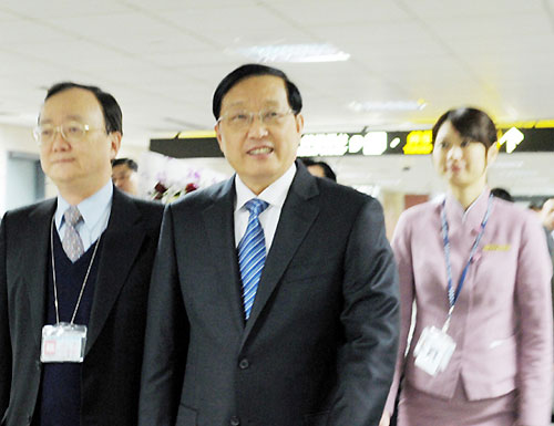 辽宁省省长陈政高率领代表团于2月15日23时抵达台北桃园机场。东北新闻网 马哲 摄