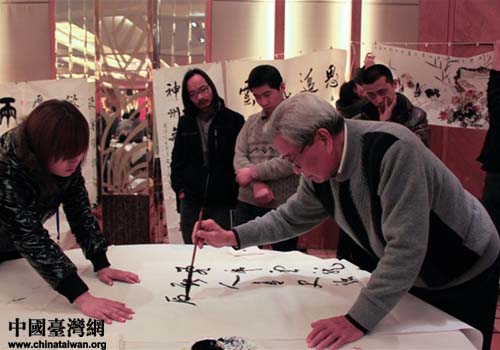 书画大师在现场泼墨献宝(陕西省台办 张群莉 摄)