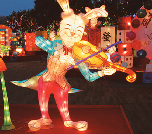 此次在元宵节开幕的“2011台湾灯会”,邀请著名导演赖声川作为总策划,设有客家创意主题馆、水光秀灯区、水果灯区、科技灯区、百兔灯区、竞赛灯区、灯海迷宫等15个灯区,为台湾自1990年举办一年一度的灯会以来规模最大的一次。苗栗县65%为客家人,据灯会组织者介绍,此次灯会将重点呈现苗栗当地的多元风采,将当地的观光、文化及产业推向世界。预计为时12天的灯会期间,前来观灯的游客将达500万人次。(记者 孔晓宁 文/图)