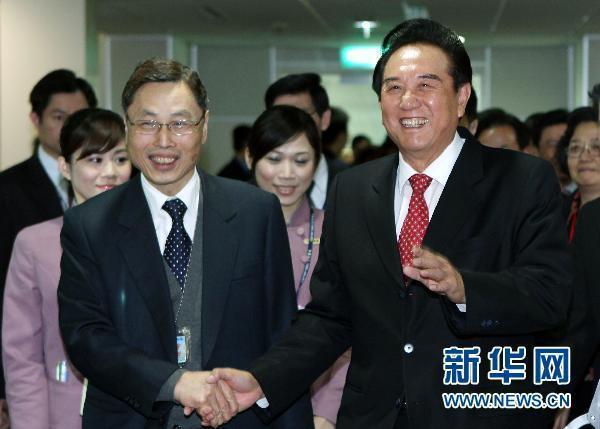 2月23日,海峡两岸关系协会会长陈云林(前右)率领海协会经贸考察团抵达台北,开始在台湾的参访行程。海基会副董事长高孔廉(前左)到机场迎接陈云林一行。新华社记者宋立东摄