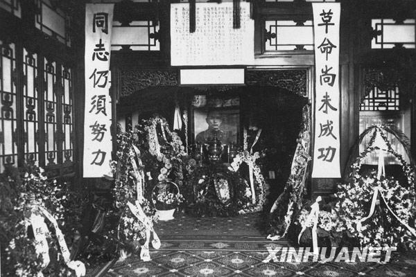 资料照片:这是当年孙中山先生的灵堂。1925年3月12日,中国革命的伟大先行者孙中山在北京逝世,享年59岁。