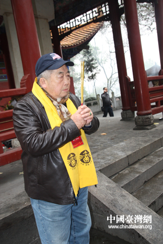 来自台北,原籍长沙的鲁灿云老先生,今年已经81岁,在清明祭祀的仪式上几乎总是落在队尾,却坚持从陵园入口一路跋涉至炎帝陵前,尽心竭力虔诚祭拜始祖炎帝神农氏。(中国台湾网 杨丽 摄)