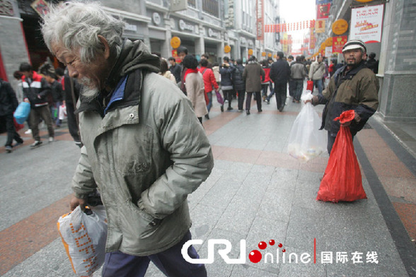 下午4点左右,记者来到上九路的金声电影院门口,一个穿着蓝色裤子的老人倚靠在影院门口,坐在地上忙着整理一堆横七竖八的空饮料瓶。老人的白发和胡子非常凌乱,身上的衣物也脏兮兮的。经过交流,记者发现老人的听力有问题,必须大声喊着才能听得到。