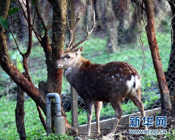 这是3月29日在台北市立动物园拍摄的雄性台湾梅花鹿。台湾梅花鹿是台湾一种特有亚种,曾广泛分布于台湾东部山地,栖息在针阔混交林的边缘和山地草原地带。以草、树叶、嫩芽、树皮、苔藓等为食,黄昏和清晨是它们最为活跃的时期。体型较大,体长大约150厘米,背部中线呈现黑色。全身的皮毛在夏天是淡栗色,白色的梅花形状斑点散布其上;冬天皮毛会变成浅褐色。1969年以后,野生梅花鹿逐渐在台湾各地绝迹,后经人工复育成功,现在岛内有近千只梅花鹿存活。 新华社记者 龚兵 摄